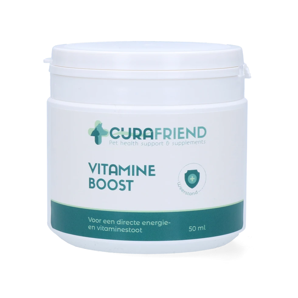 Gebruik CuraFriend Vitamine Boost voor een directe energie- en vitaminestoot bij honden. Deze vitamine boost is een aanvullend diervoeder en biedt uitkomst in verschillende situaties. Zo is het te gebruiken voor extra energie op elk gewenst moment, maar werkt het ook ondersteunend na een operatie, bij oudere honden of tijdens het verharen. CuraFriend Vitamine Boost is gemakkelijk toe te dienen in de bek.