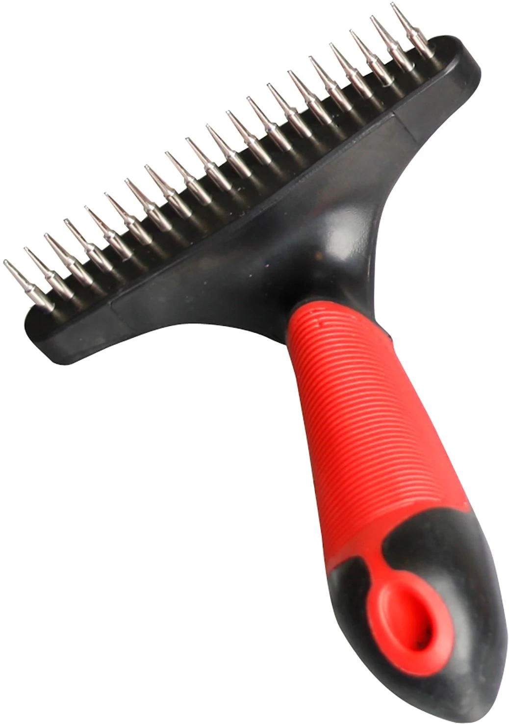 Een hark kan ook gebruikt worden voor het ontwarren van knopen. Door de roterende tanden glijdt deze hard makkelijk door de vacht. Een harkje verwijdert ook de dode haren uit de ondervacht en zijn daarom zeer geschikt voor honden met lang har en een ondervacht. bijvoorbeeld herders en golden retrievers. Reinig de hark op regelmatige basis met water en een antiseptische oplossing als Dettol of Barbicide om bacteriegroei te voorkomen. Nadien goed laten drogen.
