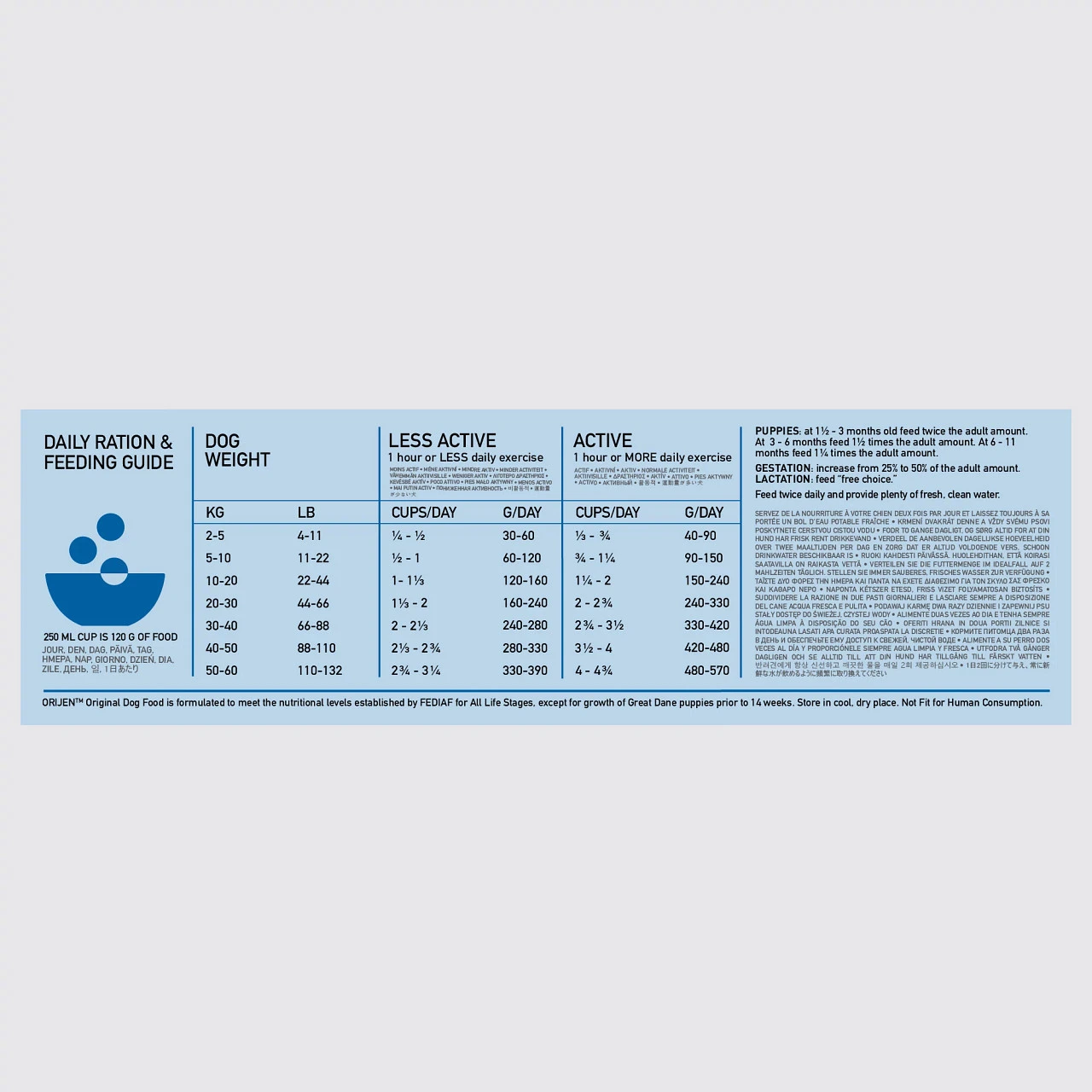 De natuurlijke voeding van ORIJEN bevat een ongeëvenaarde variatie aan vers vlees en verse vis. ORIJEN droogvoeding wordt bereid met 85% dierlijke ingrediënten, en is 100% natuurlijk. Introduceer variatie in je hond’s dieet en ontdek al onze smaken!